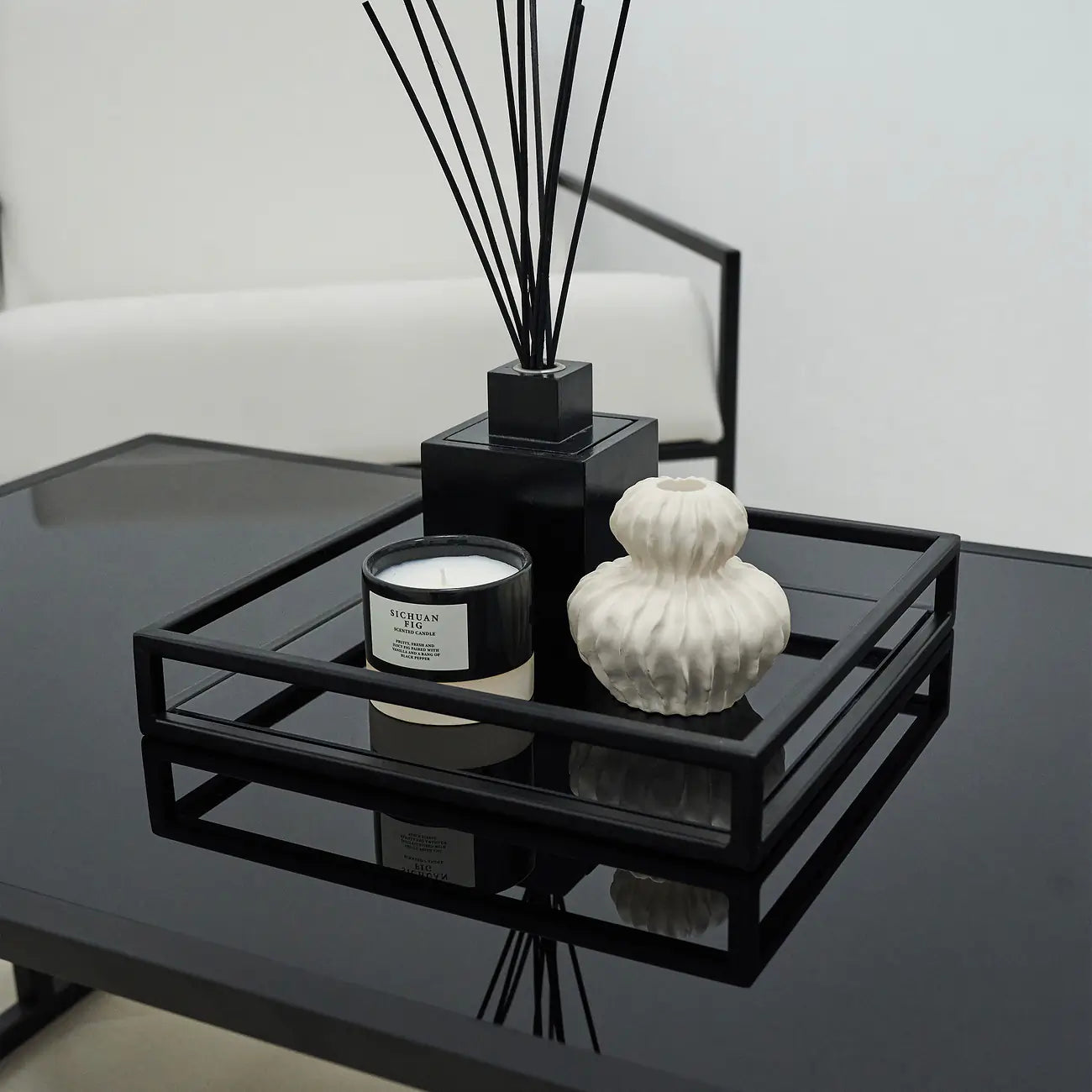 Metalinis tvirtas padėklas, matinės juodos spalvos, grūdintas juodas veidrodis. Labai masyvus ir sunkus.