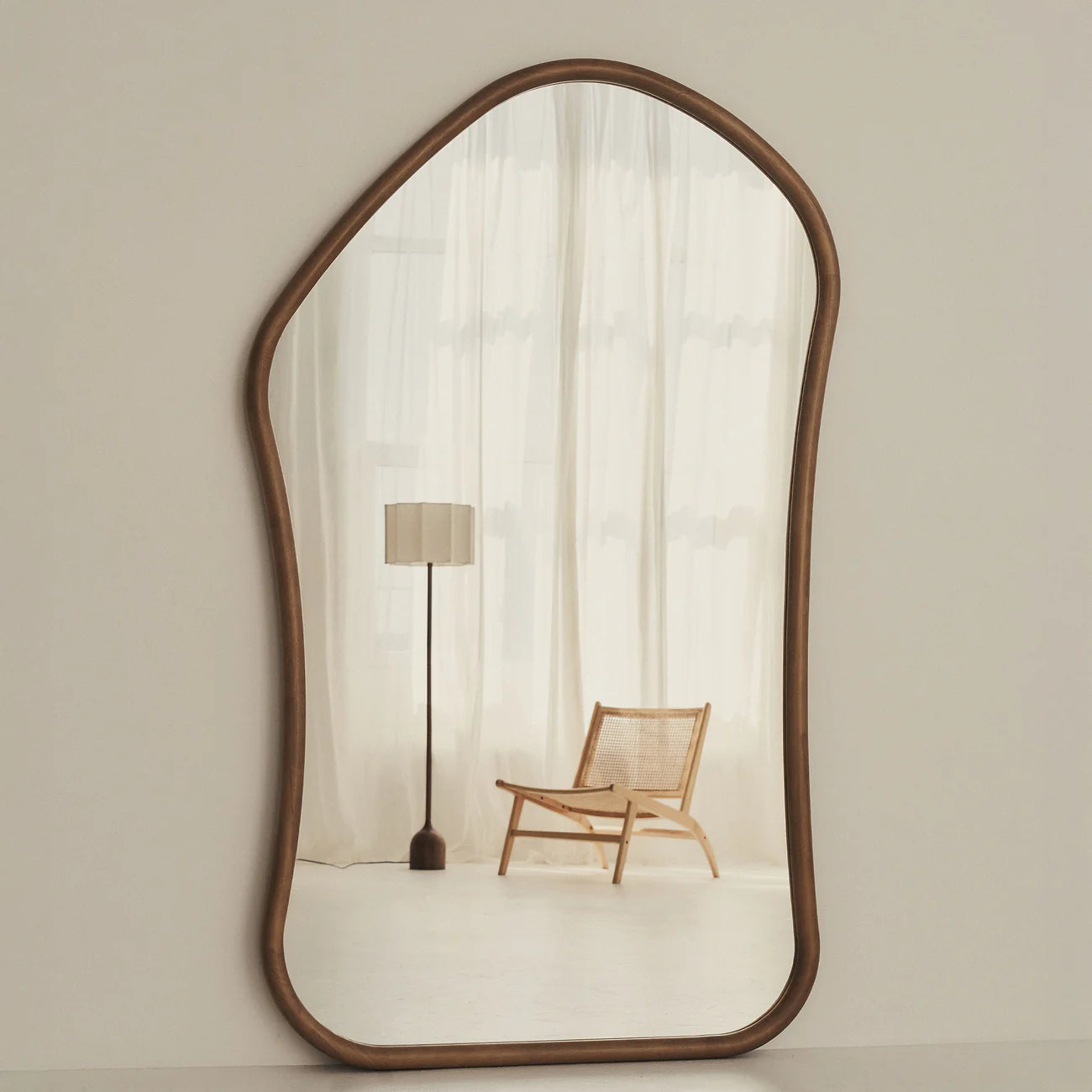 ALI - NESTANDARTINĖS FORMOS PAKABINAMAS/PASTATOMAS VEIDRODIS, ŠILTO MEDŽIO ATSPALVIO, 180x110 CM