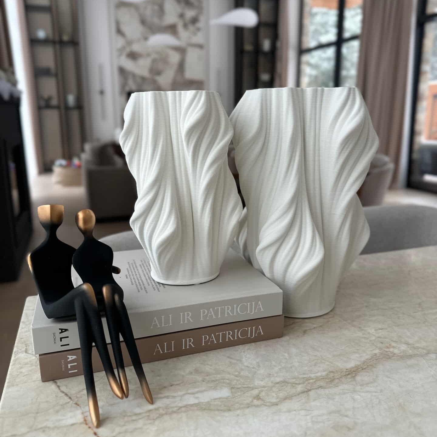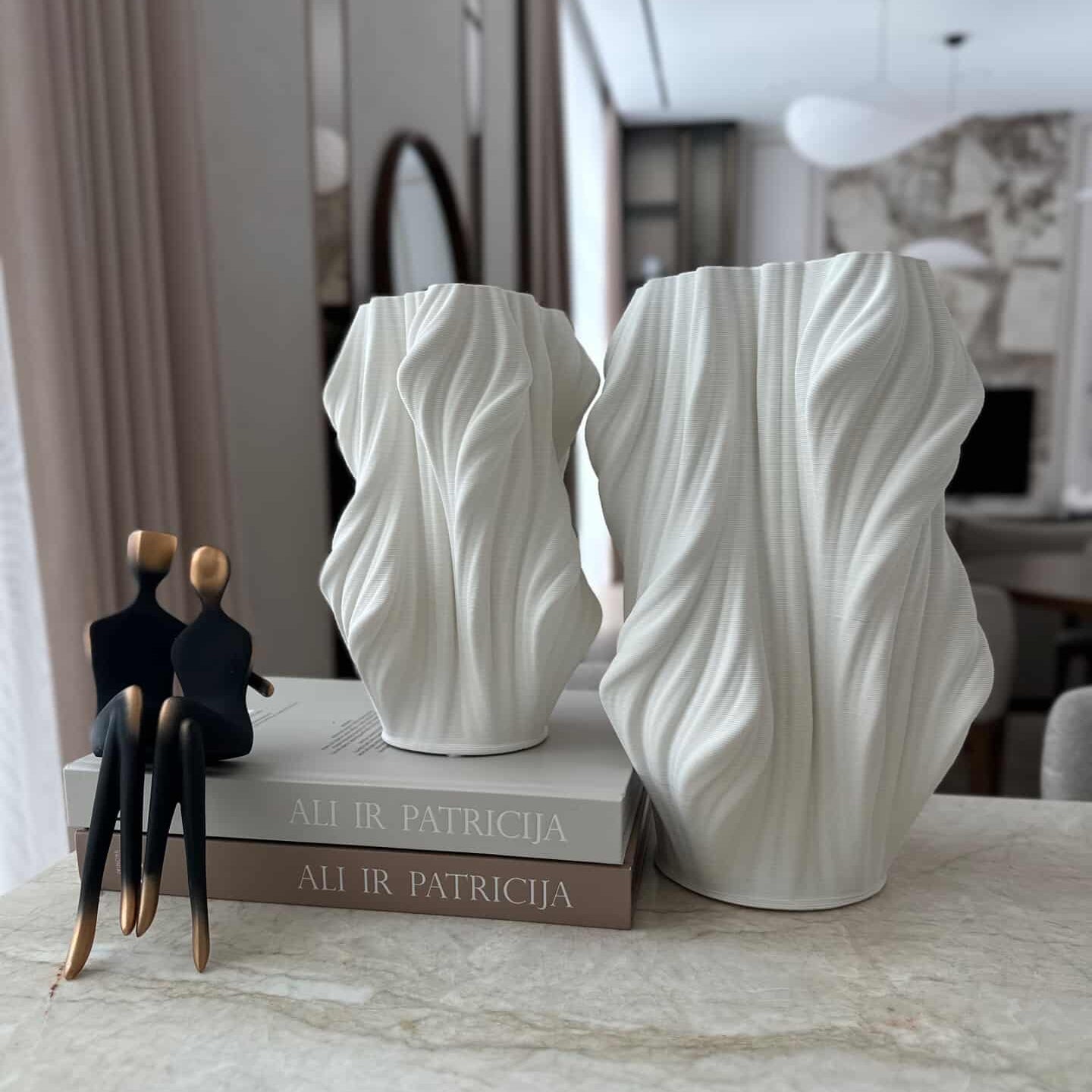 Matinių vazų – tai išskirtinio dizaino keramikinės vazos, kurios taps tikra interjero pažiba. Šis modernus, tačiau subtiliai organiškas dekoras išsiskiria savo neįprasta forma – banguotu siluetu, kuris primena natūralius gamtos motyvus, jūrą ar abstraktų meno kūrinį.