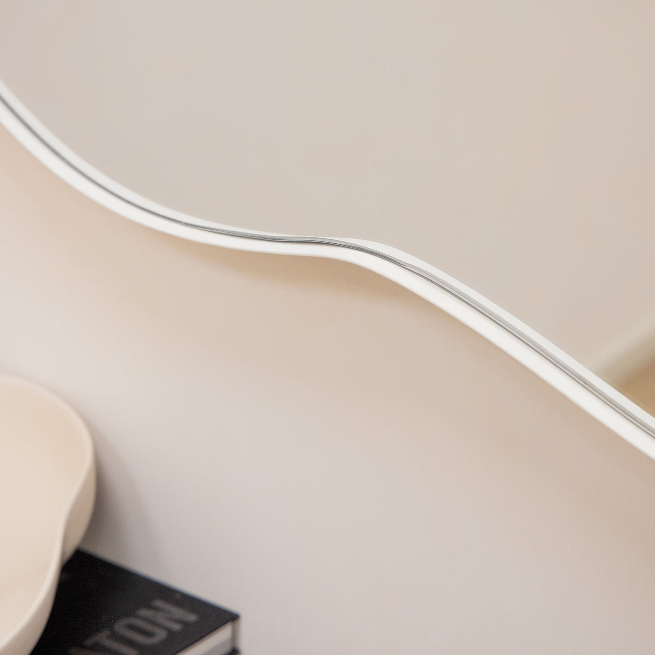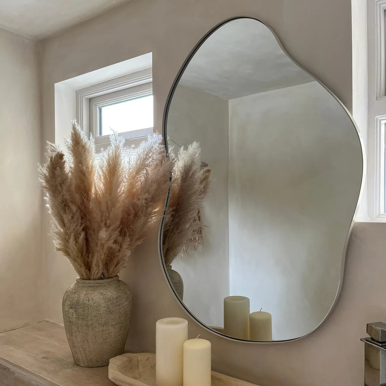 Veidrodžio organiška forma ir keturi pakabinimo taškai leidžia lengvai pakabinti veidrodį tiek horizontaliai, tiek vertikaliai.