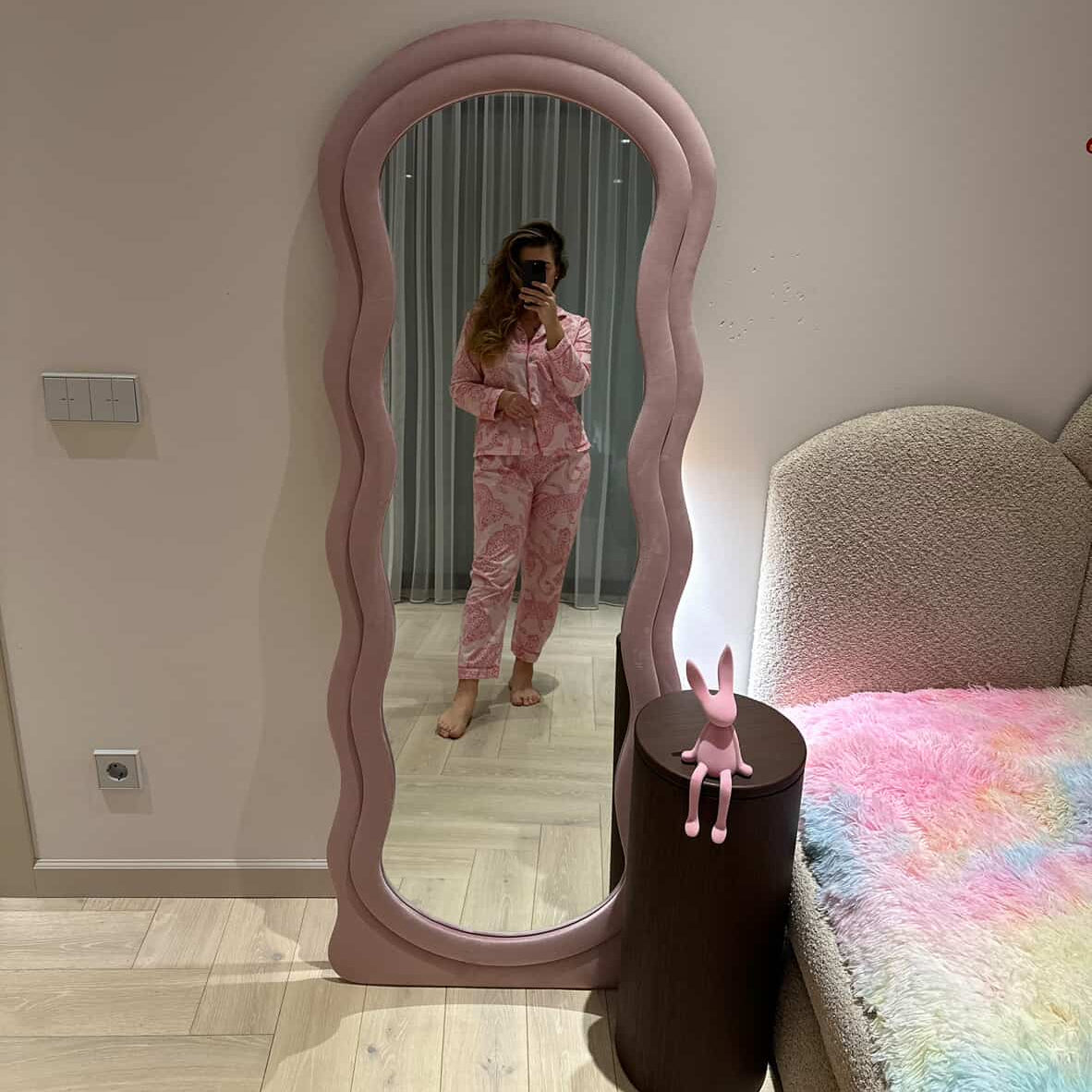 EVA - MEDŽIAGINIS PAKABINAMAS/PASTATOMAS VEIDRODIS, PELENŲ ROŽINĖS SPALVOS, 160X60 CM