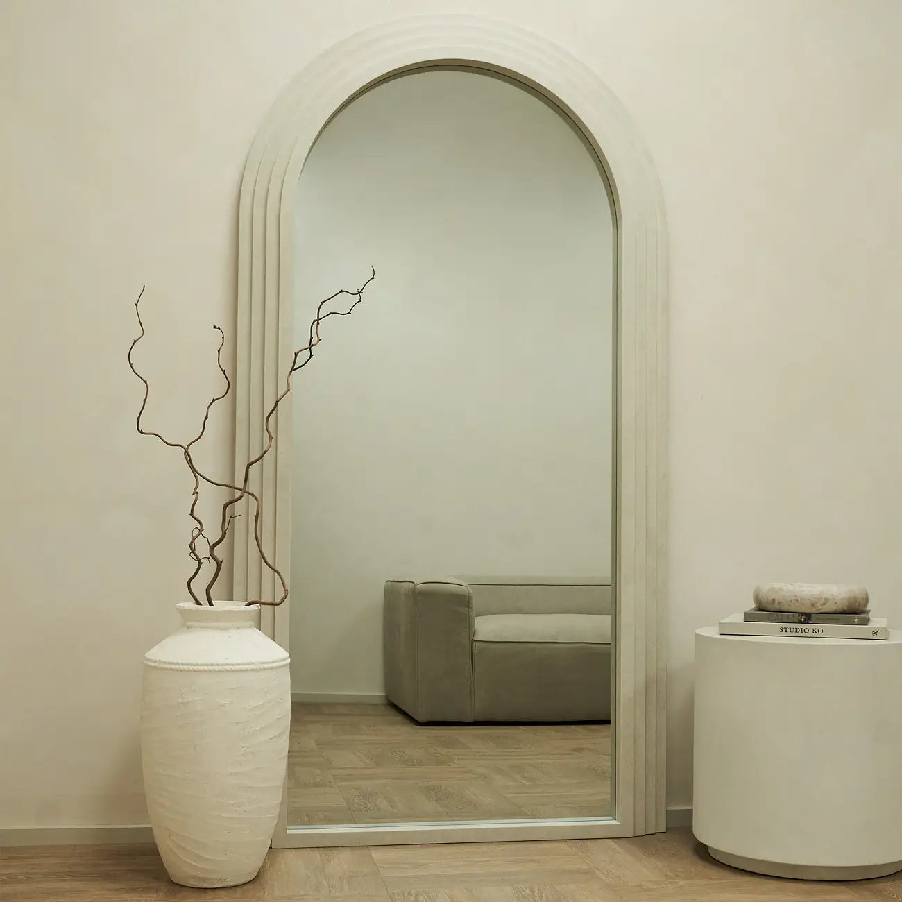 Klasikinis arkos formos veidrodis su mediniu rėmu, betono atspalviu – tai funkcija ir grožis viename gaminyje. Veidrodis padidins namų erdvę ir suteiks jaukumo bei elegancijos namams.