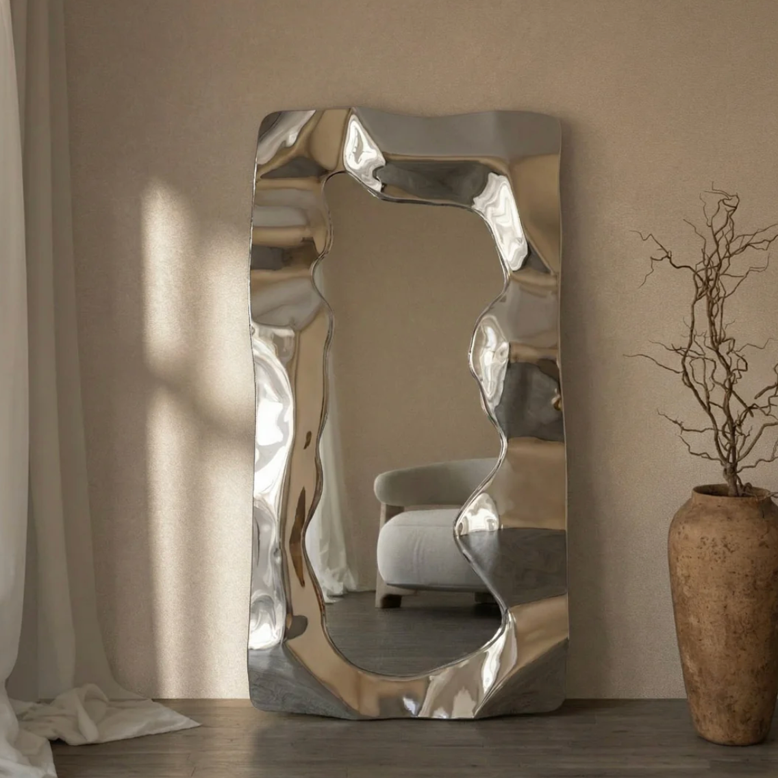 STENLE - STAČIAKAMPIO FORMOS PAKABINAMAS/PASTATOMAS VEIDRODIS, SIDABRINĖS SPALVOS, 200X110 CM