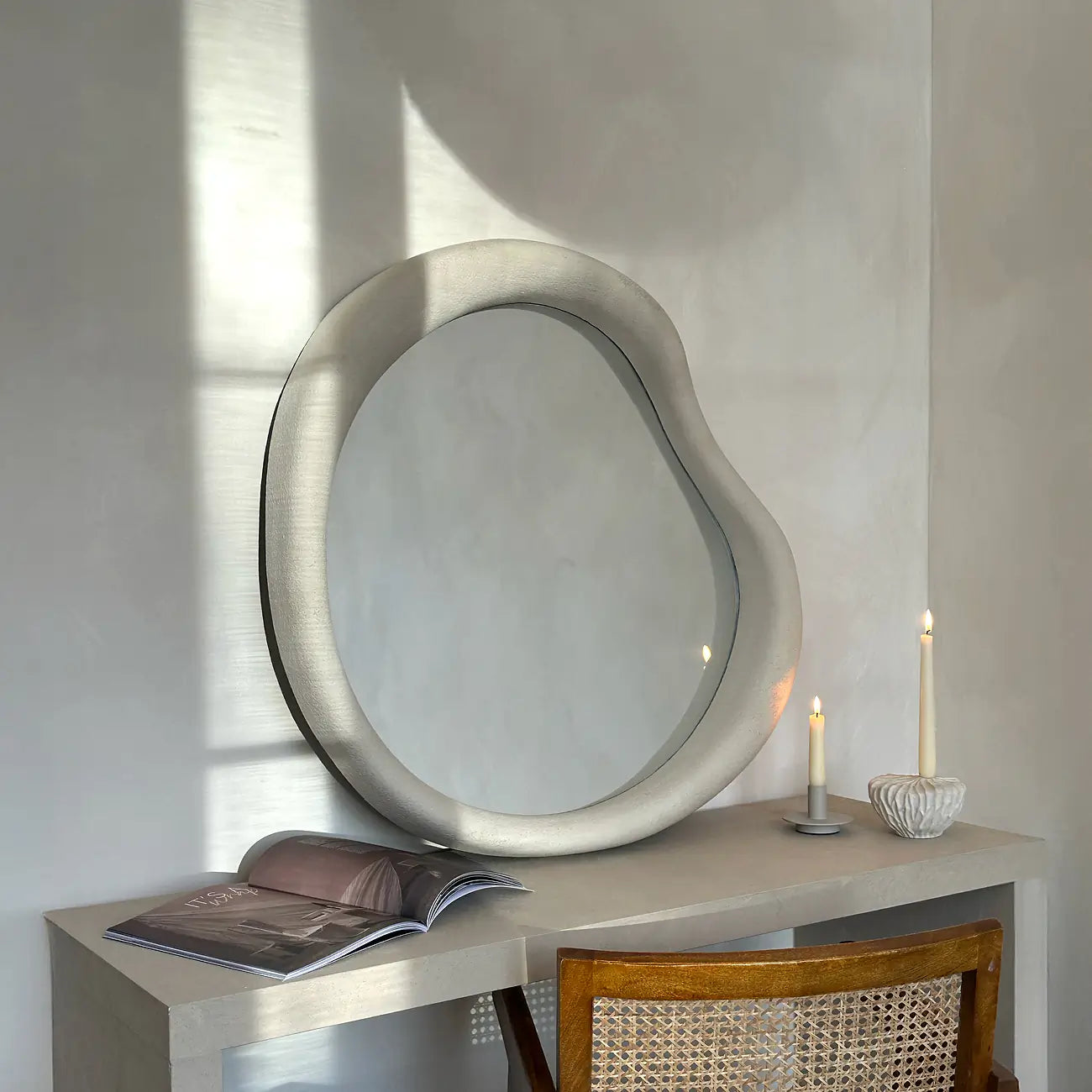 WABI - NESTANDARTINĖS FORMOS PAKABINAMAS/PASTATOMAS VEIDRODIS, BALTOS SPALVOS, 119X76 CM